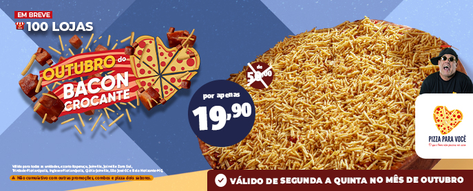 A Pizza Para Você preparou uma novidade imperdível para o mês de outubro: a campanha Outubro do Bacon Crocante. Coberta com bacon e batata palha